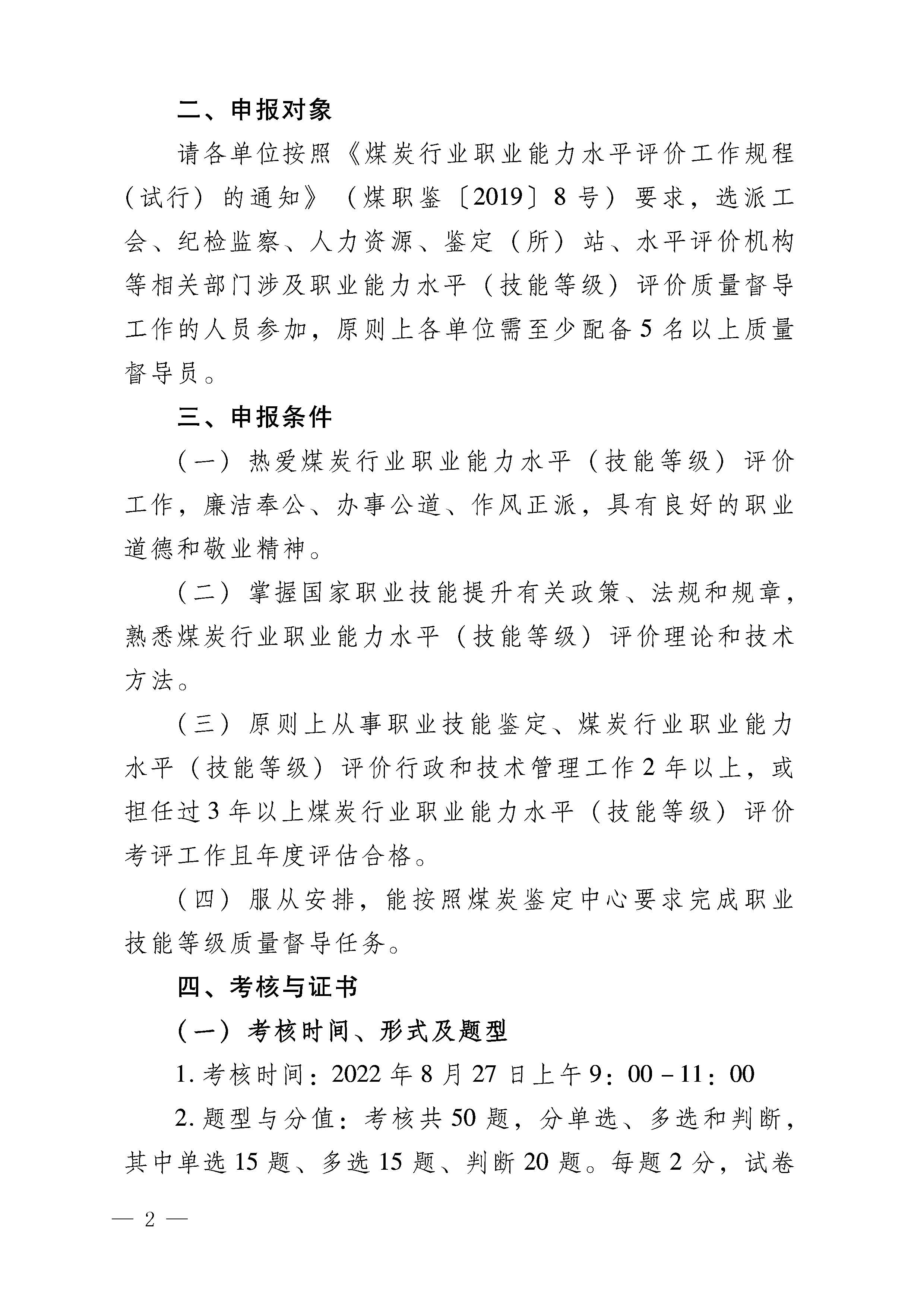 煤职鉴评价函〔2022〕11号_关于开展2022年第一次煤炭行业职业能力水平(技能等级)评价质量督导员培训及在线统一考试的通知