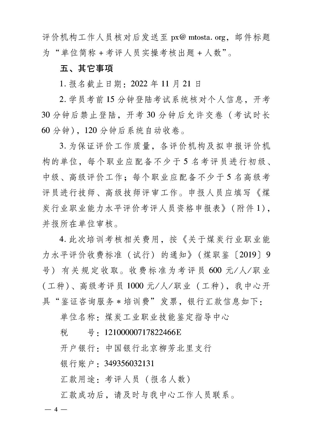 关于开展2022年第三次煤炭行业职业能力水平(技能等级)评价考评人员培训及在线统一考试的通知