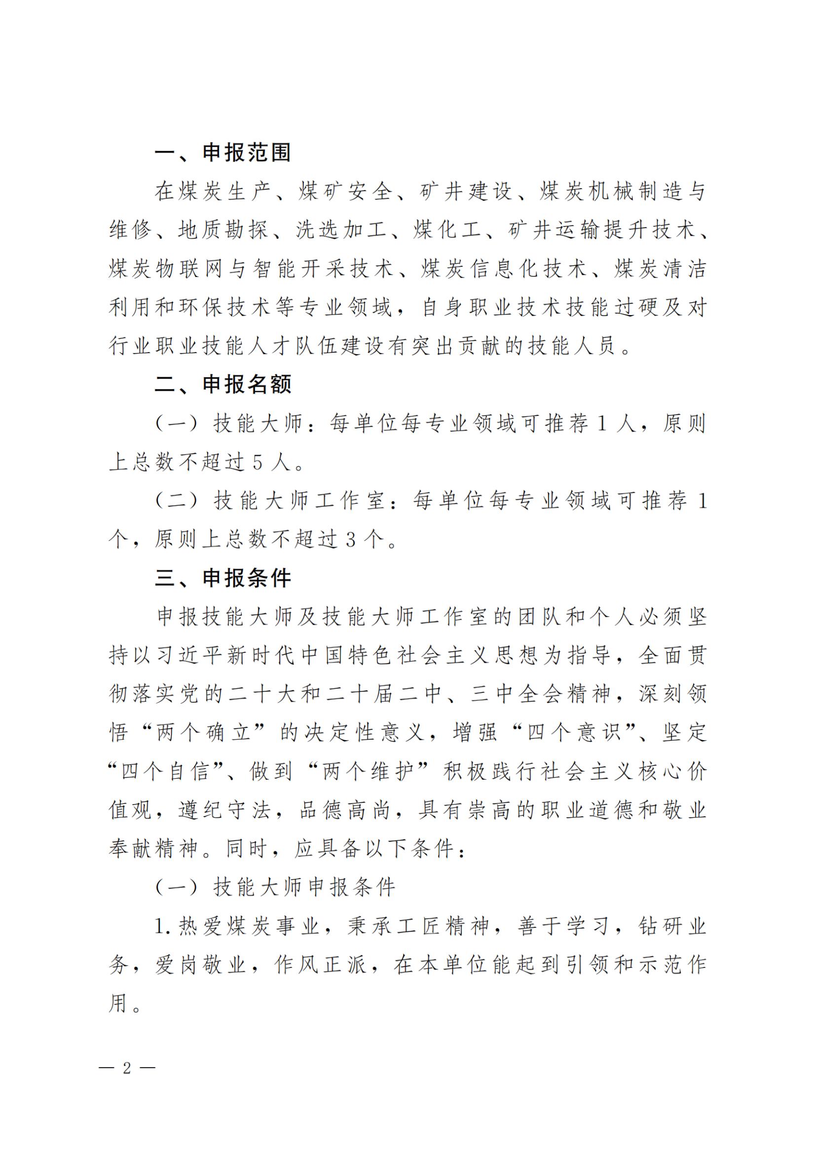 - 关于开展2025年度煤炭行业(工程技术人员)技能大师及技能大师工作室申报命名活动的通知