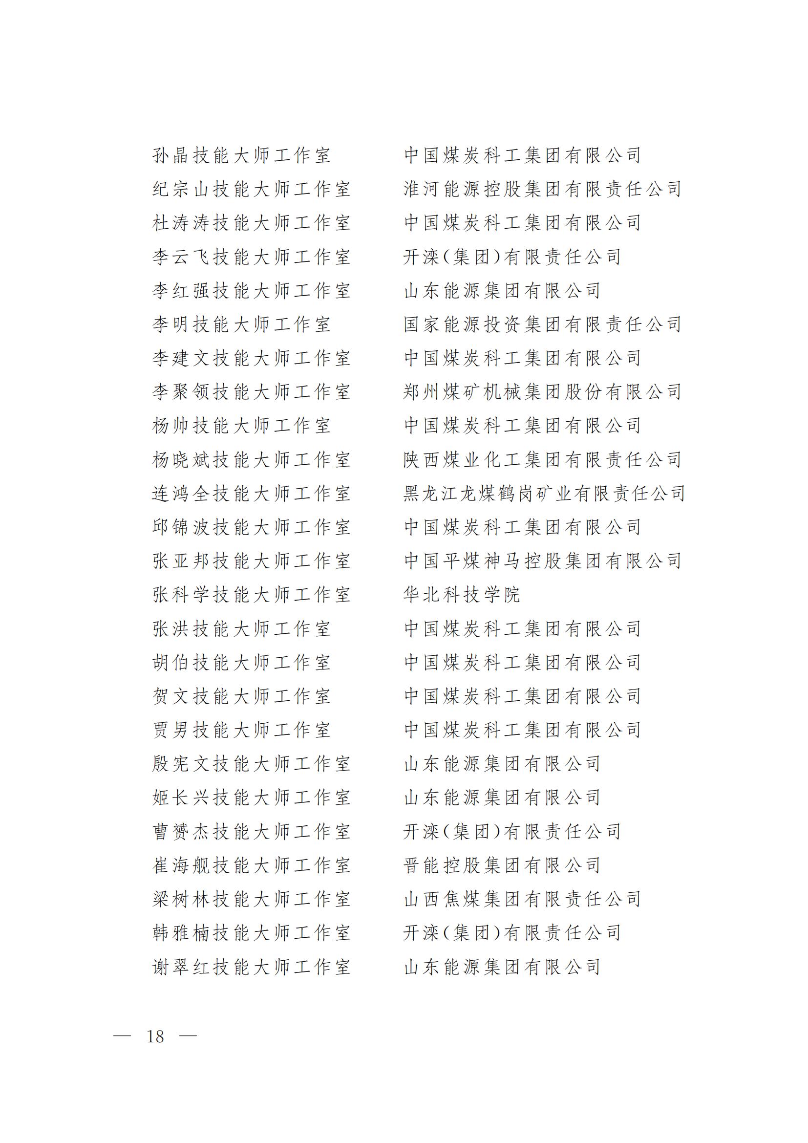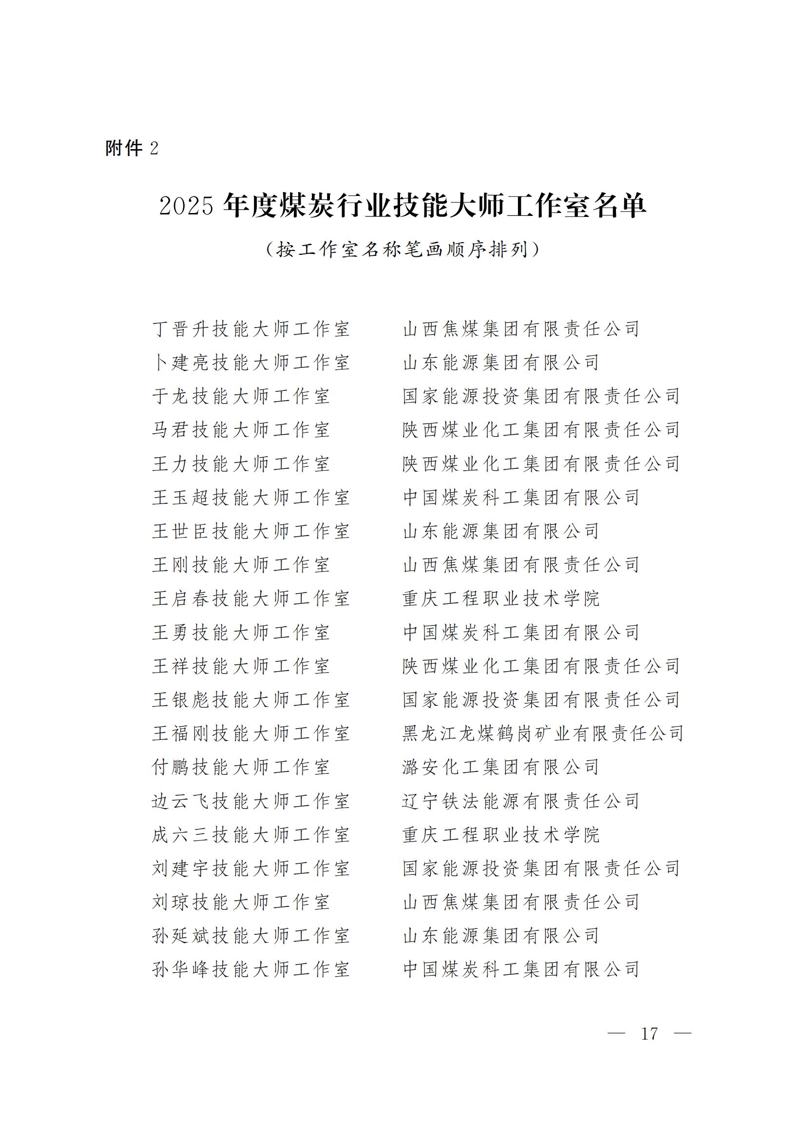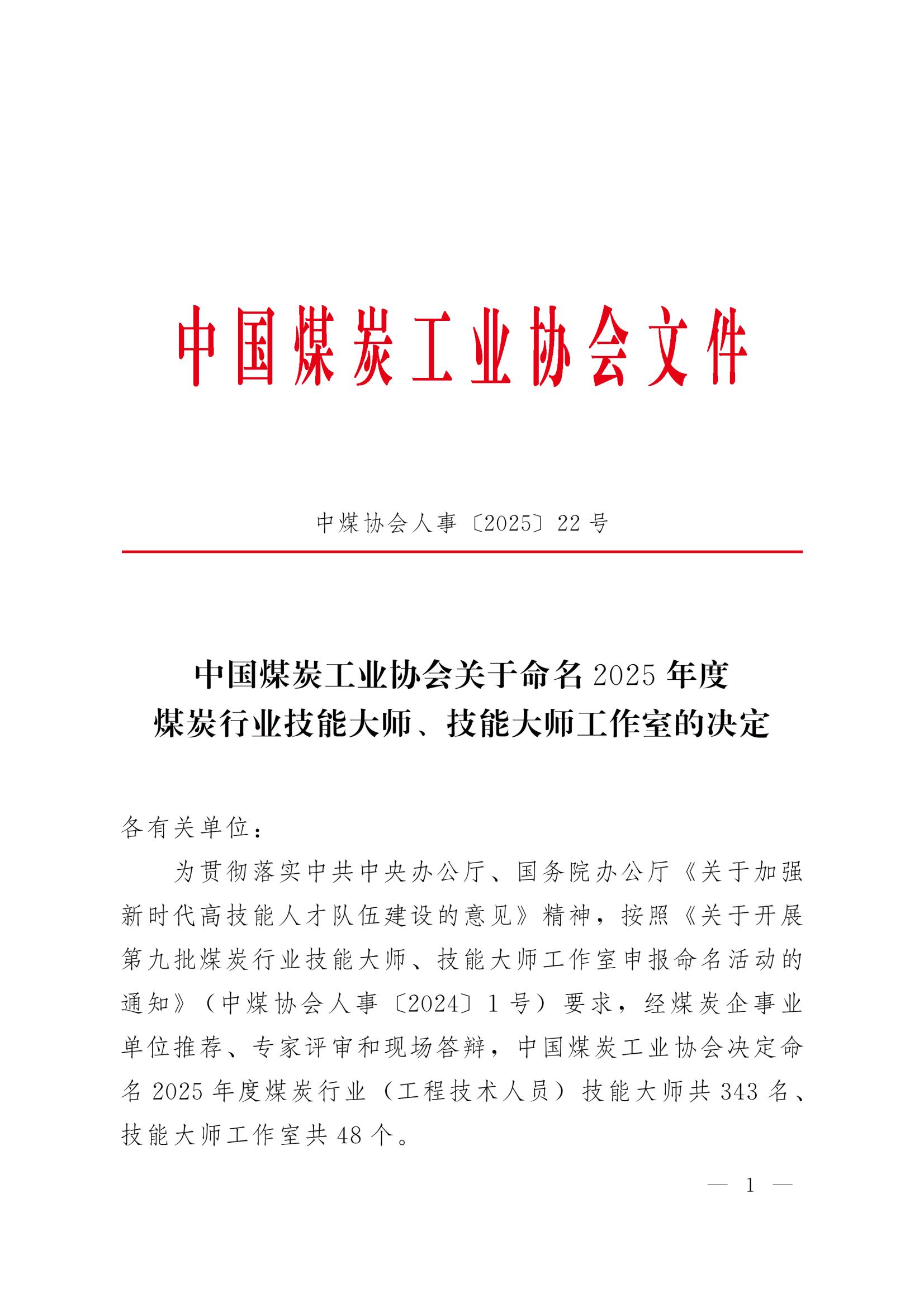 - 中国煤炭工业协会关于命名2025年度煤炭行业技能大师、技能大师工作室的决定