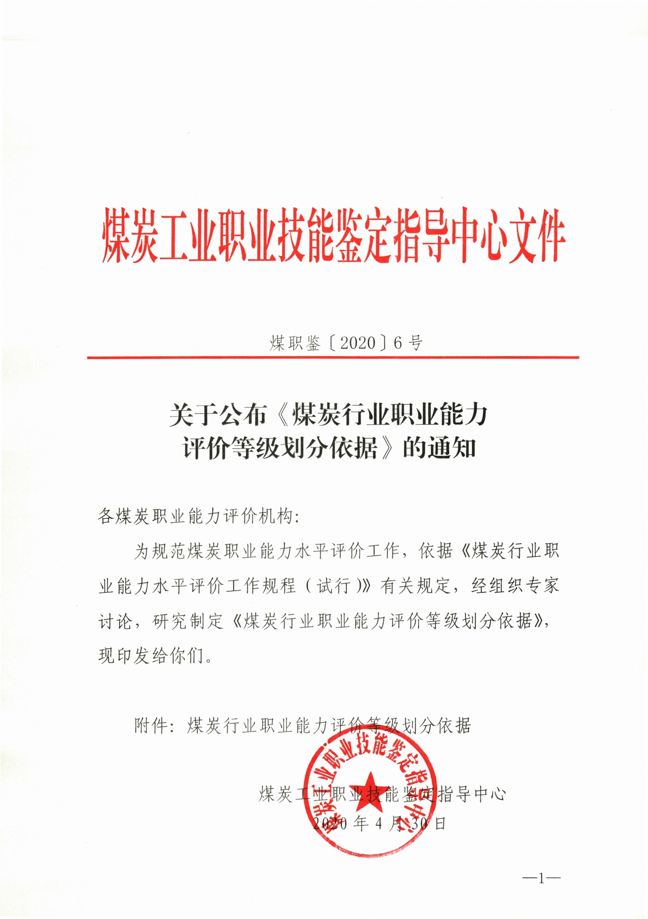 关于公布《煤炭行业职业能力评价等级划分依据》的通知