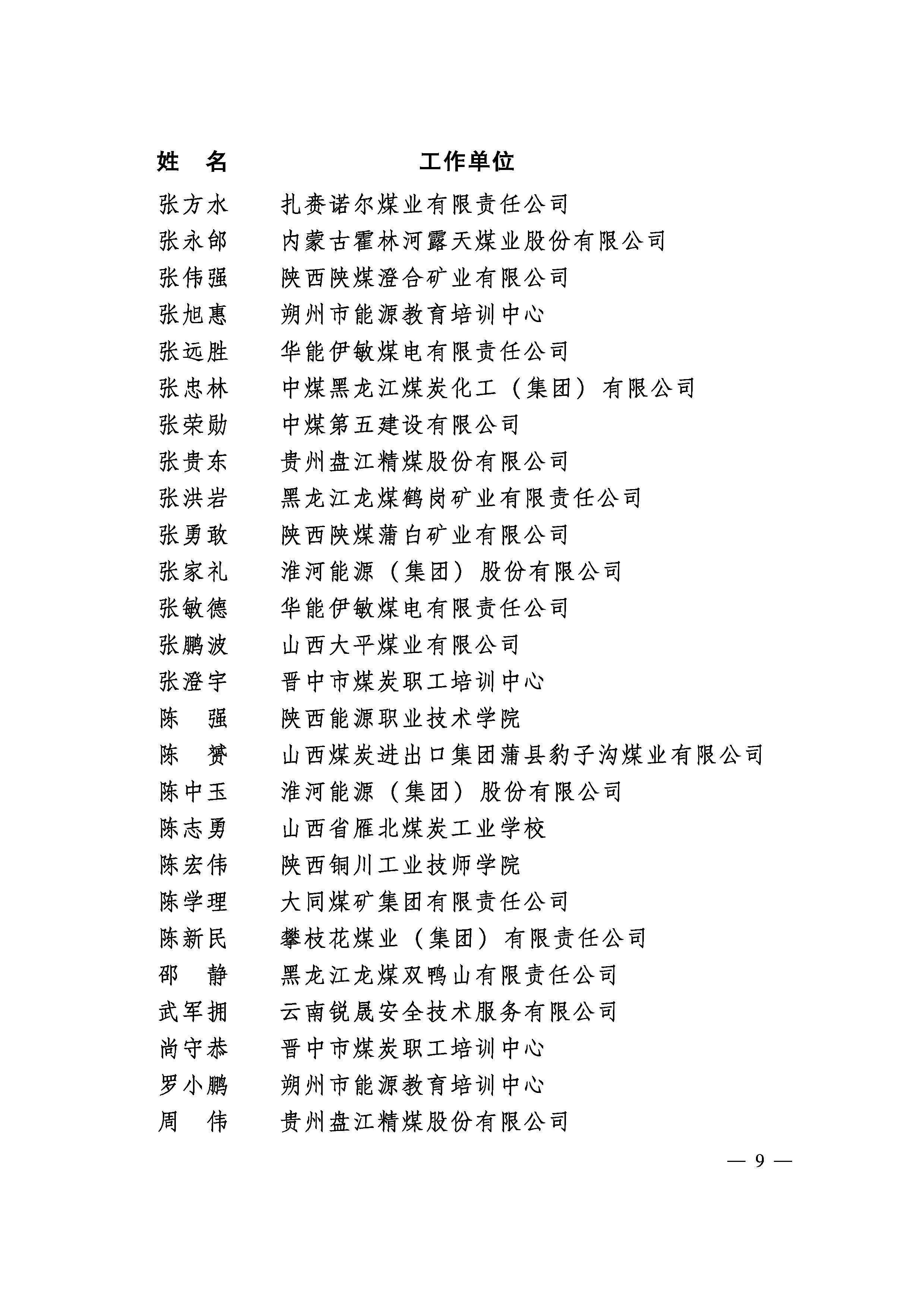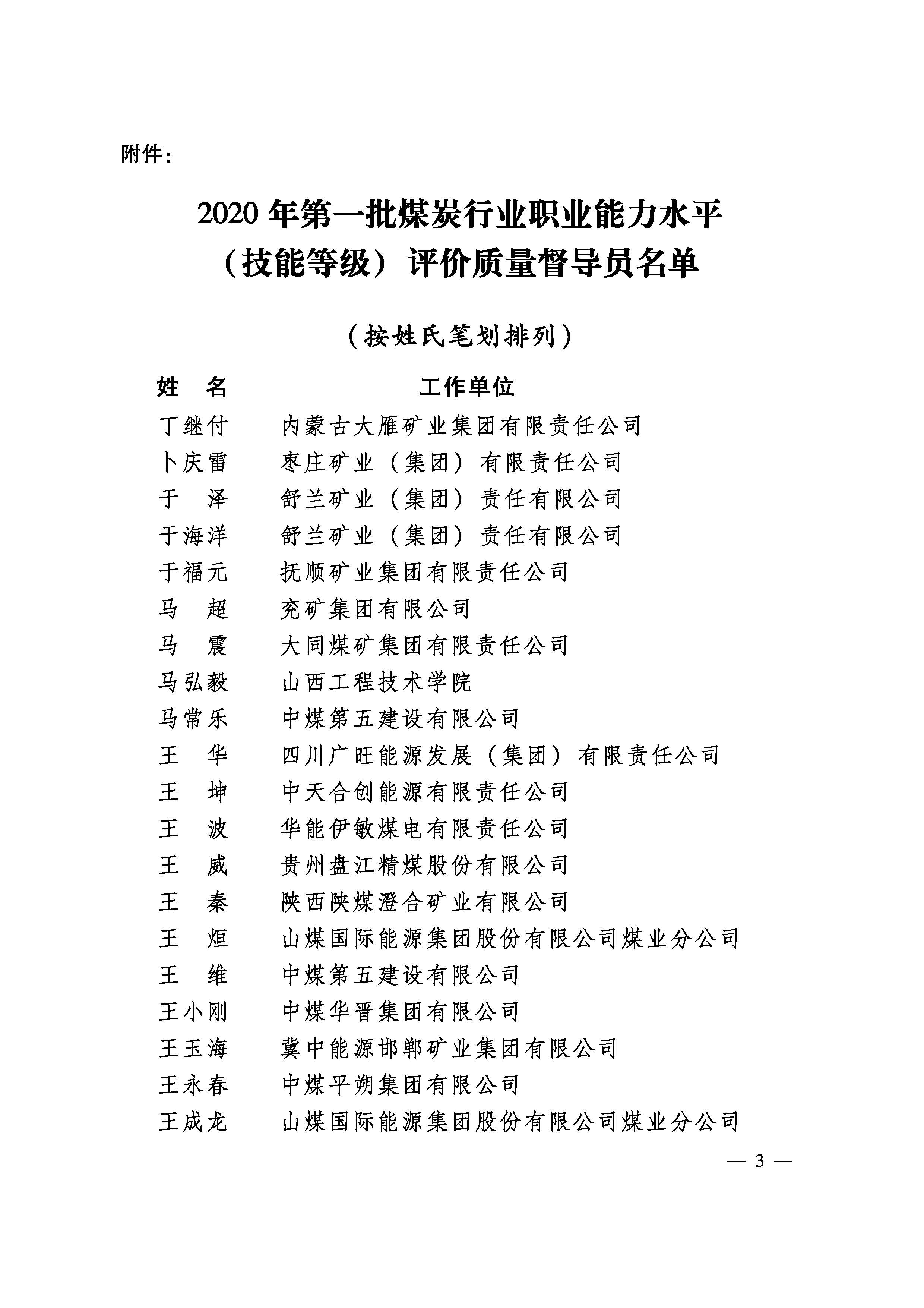 关于公布2020年第一批煤炭行业职业能力水平(技能等级)评价质量督导员名单的通知