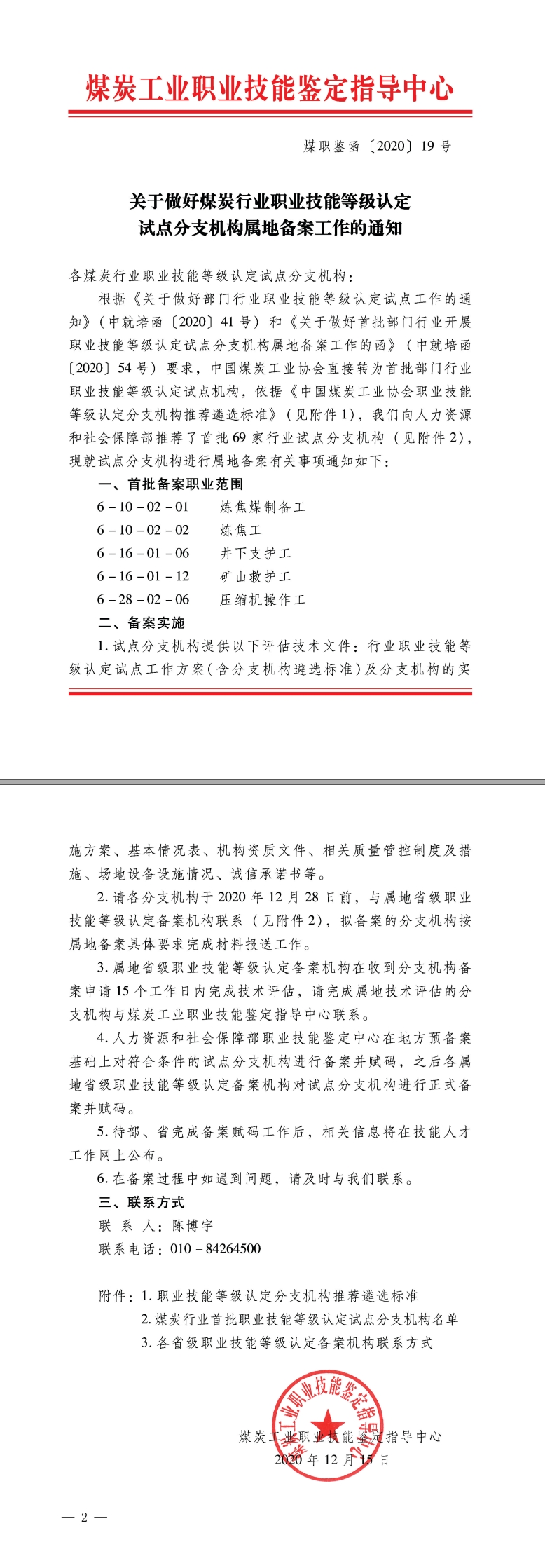 关于做好煤炭行业职业技能等级认定试点分支机构属地备案工作的通知