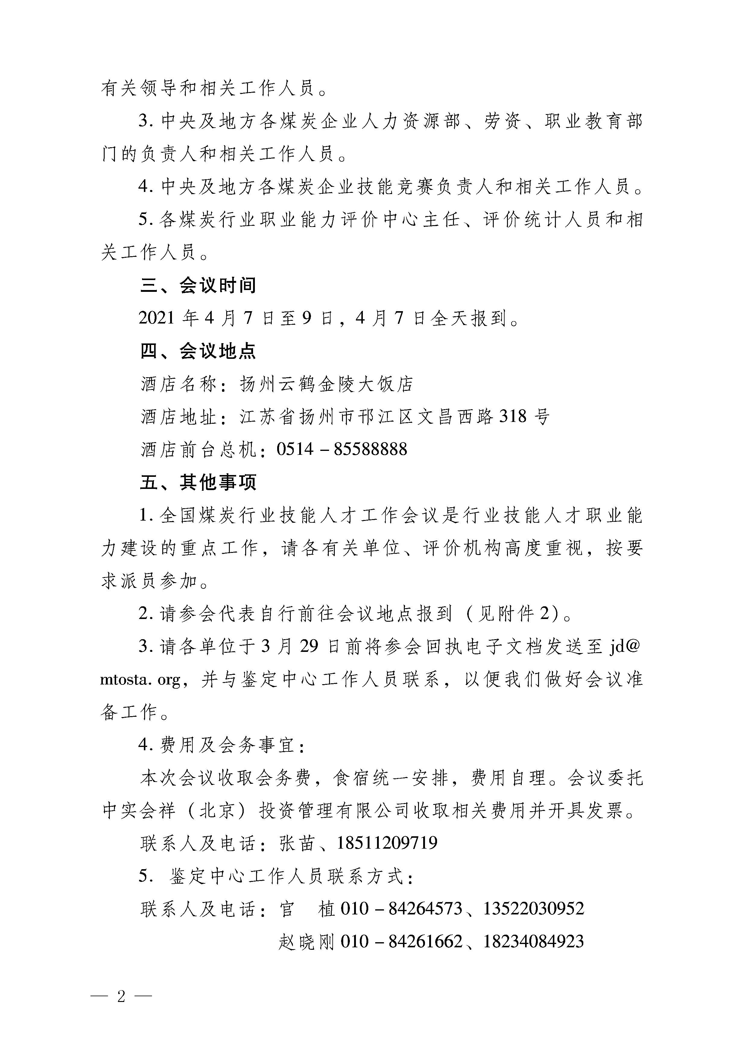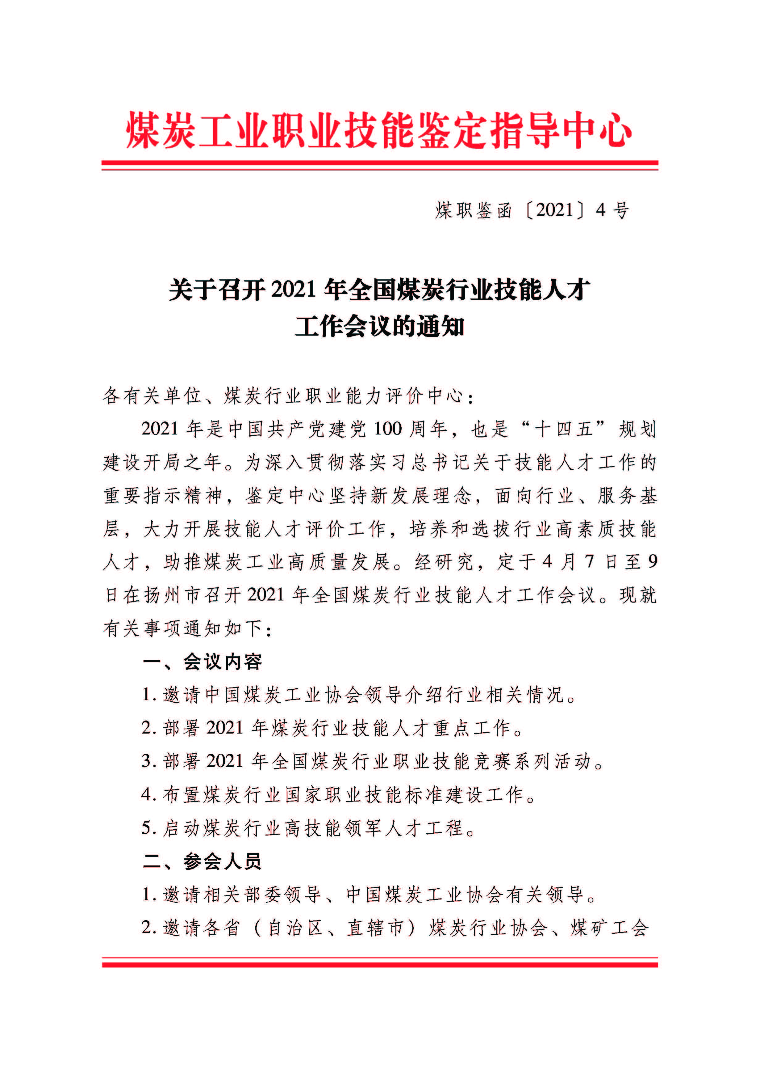 关于召开2021年全国煤炭行业技能人才工作会议的通知