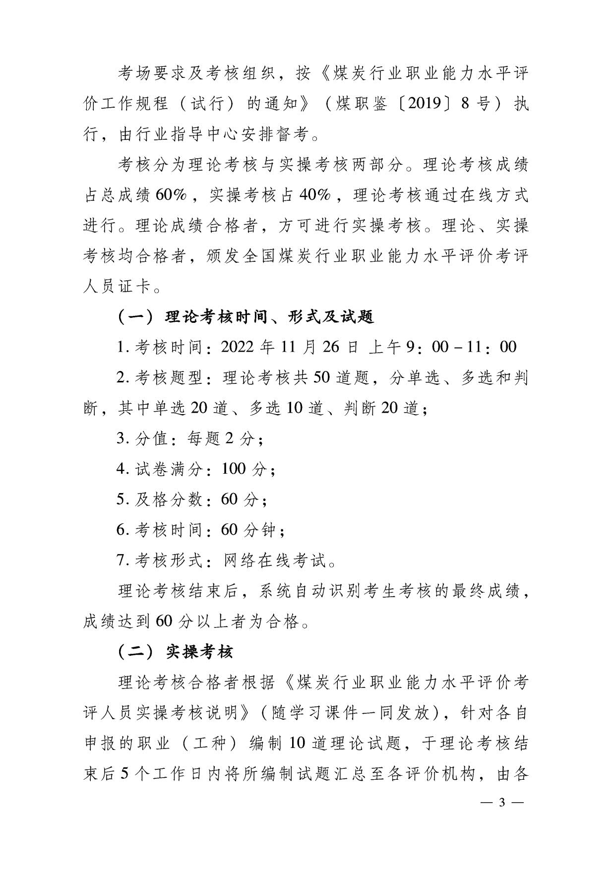 关于开展2022年第三次煤炭行业职业能力水平(技能等级)评价考评人员培训及在线统一考试的通知