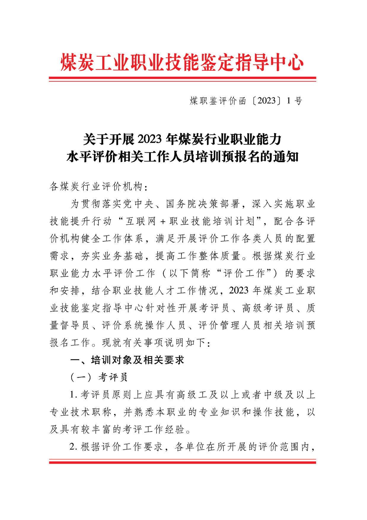 - 关于开展2023年煤炭行业职业能力水平评价相关工作人员培训预报名的通知