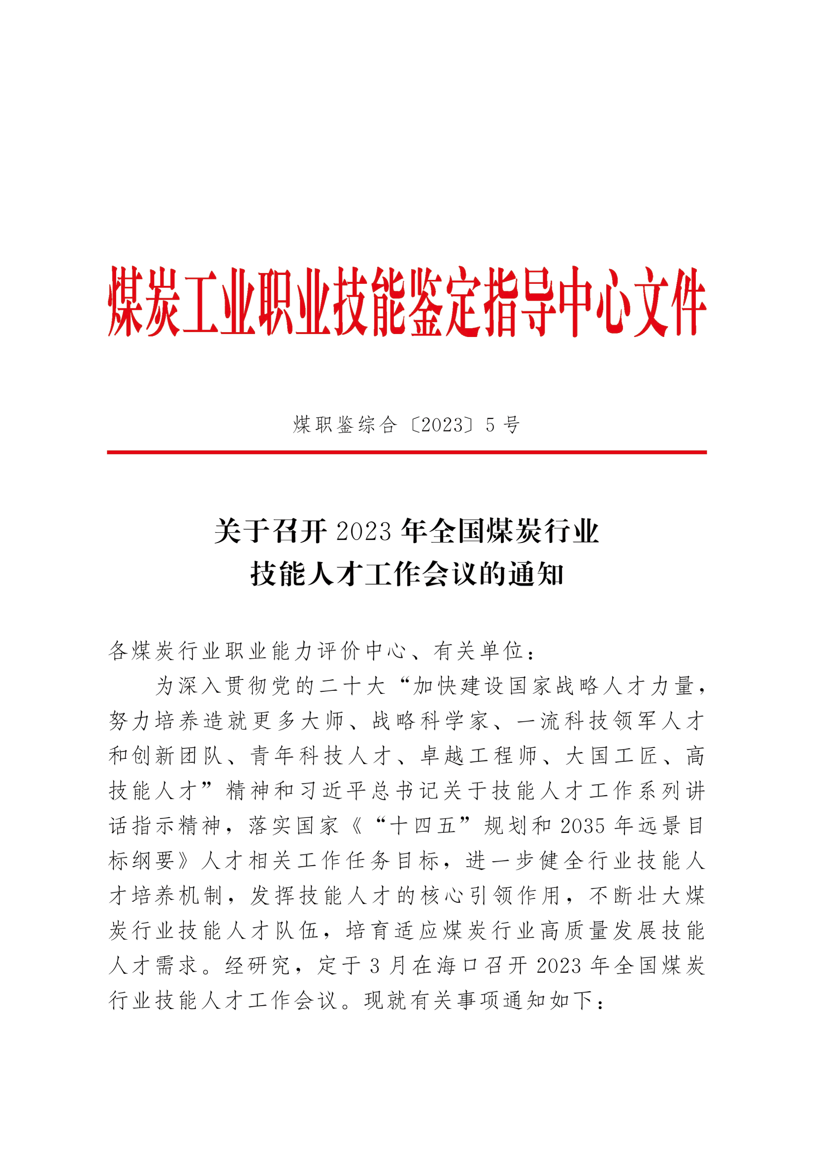 - 关于召开2023年全国煤炭行业技能人才工作会议的通知