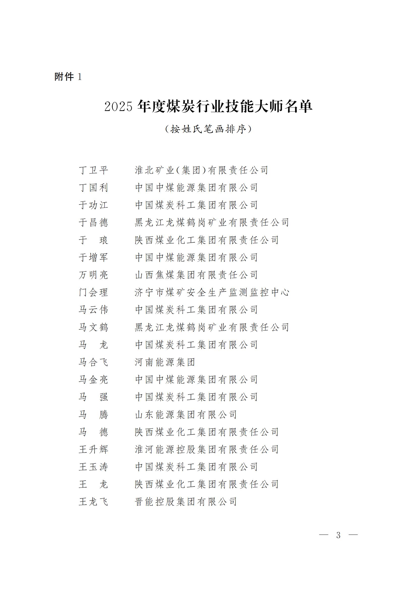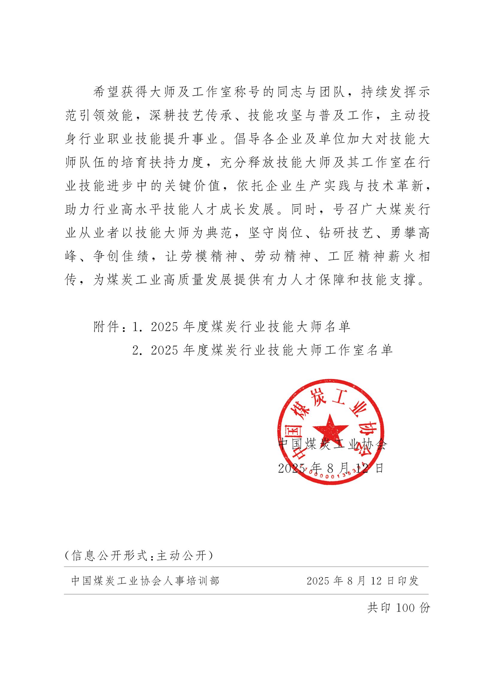 - 中国煤炭工业协会关于命名2025年度煤炭行业技能大师、技能大师工作室的决定