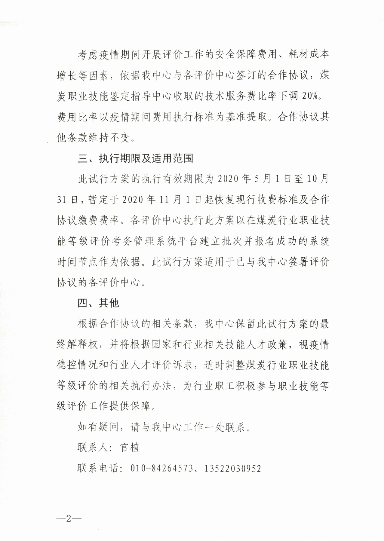 关于在新型冠状病毒感染肺炎疫情期间调整煤炭行业职业能力水平评价费用标准及服务费率的通知