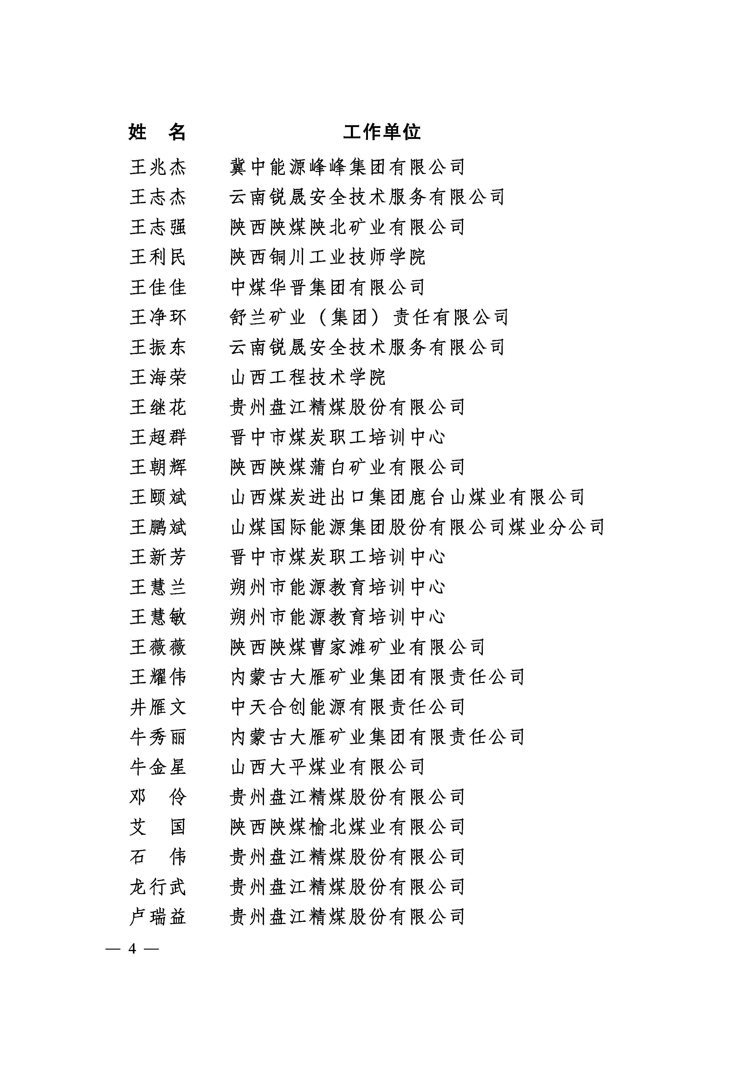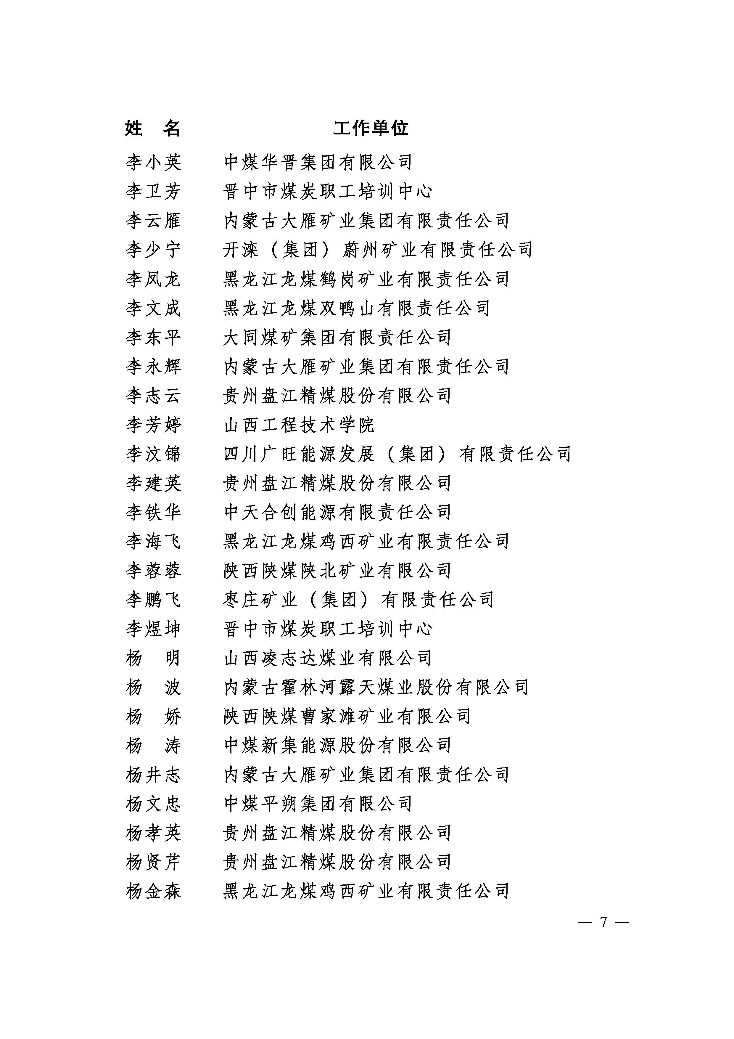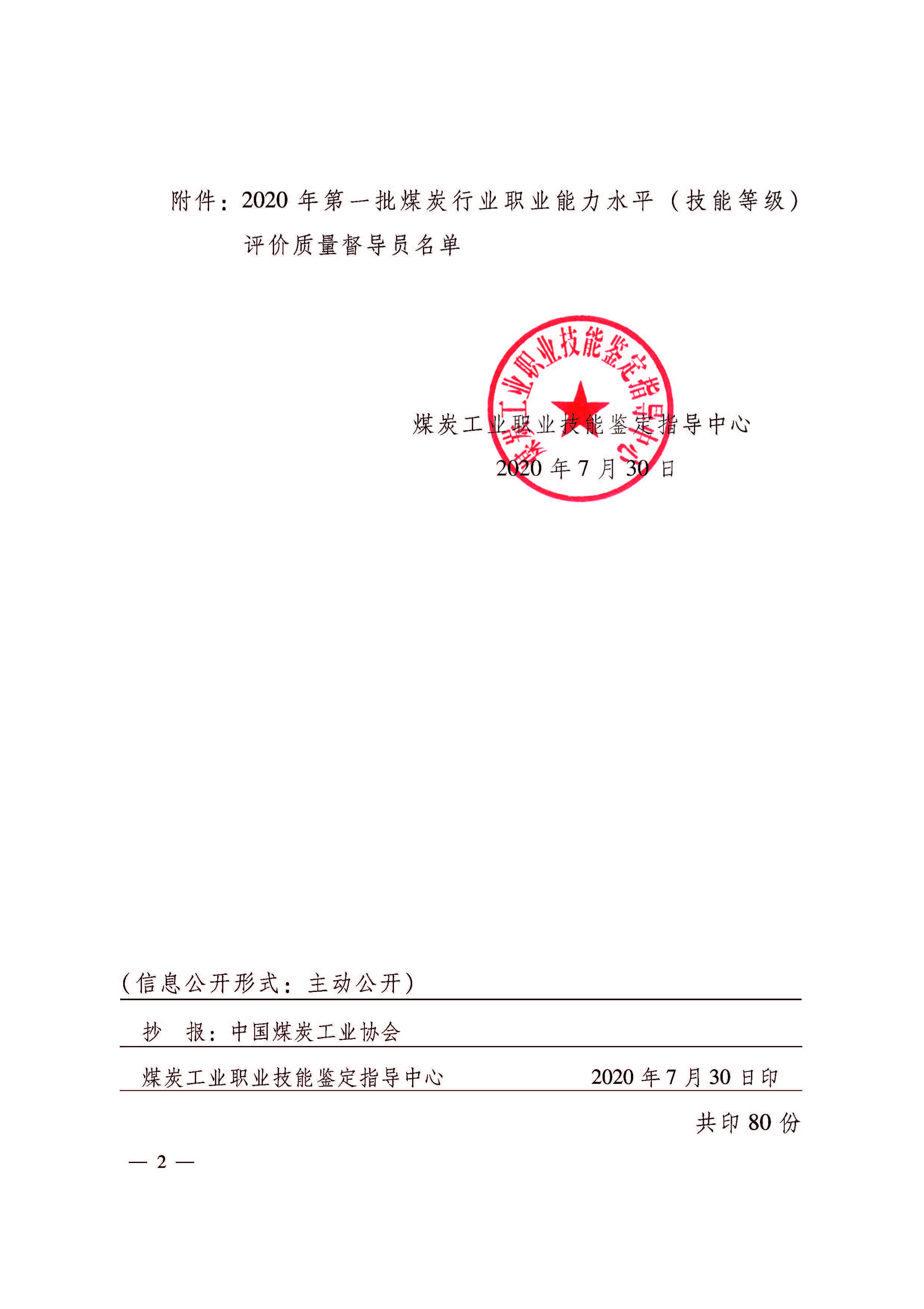 关于公布2020年第一批煤炭行业职业能力水平(技能等级)评价质量督导员名单的通知